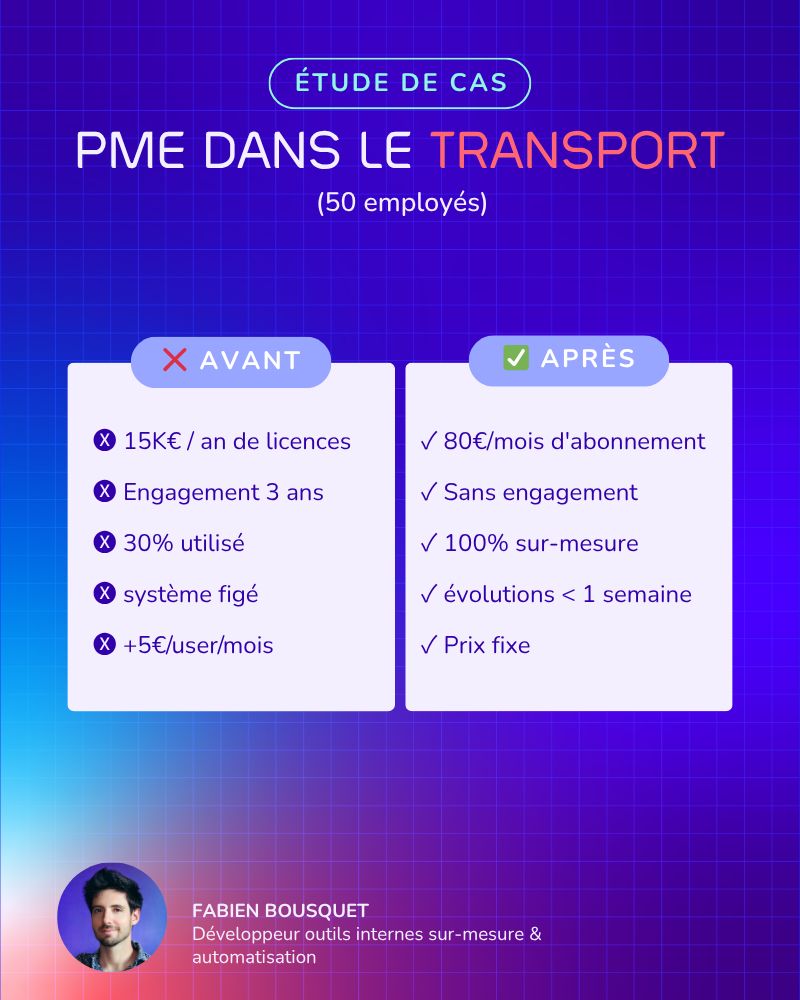Le mois dernier, j'ai aidé une PME logistique à passer de 15K€ à 1200€/an de frais de logiciel